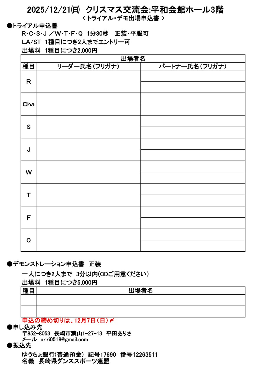 長崎市連盟 ダンス交流会 開催のお知らせ