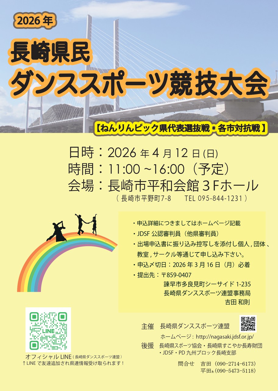 長崎県民ダンススポーツ競技大会が長崎市平和会館にて開催されます